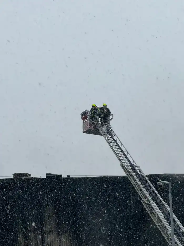 Корреспондент находится на месте происшествия и сообщает, что сильный огонь, о котором сообщалось ранее, удалось потушить, однако спасатели продолжают работу до полного устранения опасности.