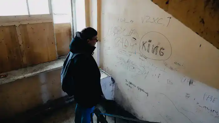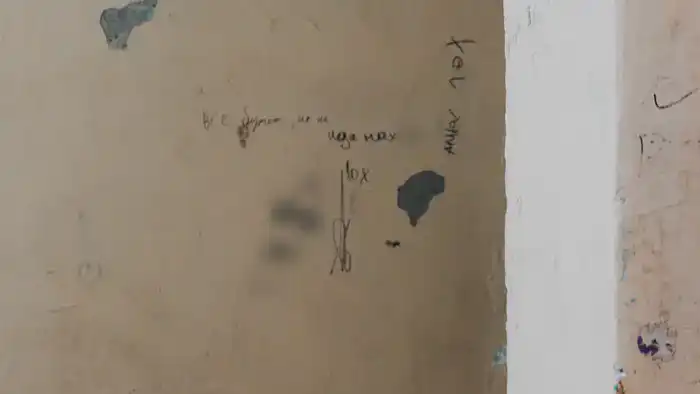 На стенах можно увидеть множество нецензурных надписей. Жители пытались закрасить их, но они появляются снова.