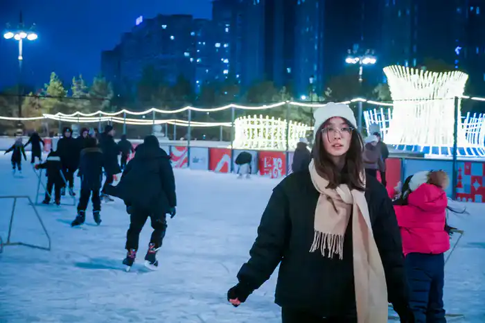 Фотозоны привлекали внимание, и возле них выстраивались очереди. Пока на сцене шла концертная программа, каток был заполнен людьми, которые катались на льду, создавая атмосферу большого городского праздника.