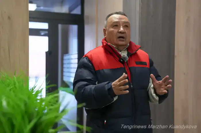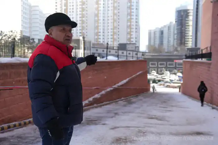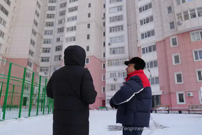 Председатель ОСИ ЖК "Гранд Астана Элит" Аман Тлеубаев разговаривает с журналистом. Фото ©️