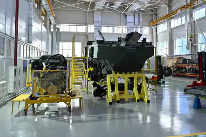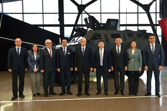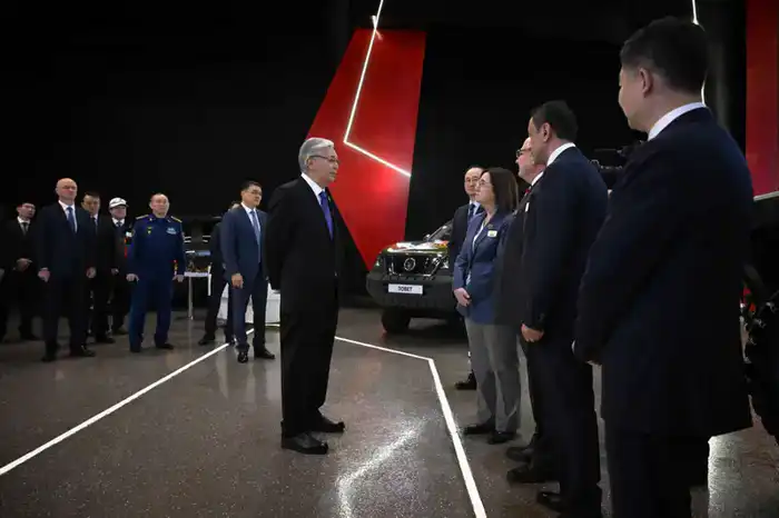 На заводе Токаев осмотрел производственные цеха и ознакомился с технологическим процессом. Компания выпускает до 200 единиц плавающих колесных бронемашин Taimas 8 x 8 и Aibar 4 x 4, а также гусеничной техники Tulpar.