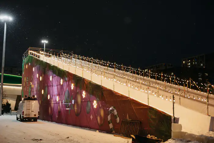 Особое внимание привлекает снежная горка высотой 12 метров с длиной ската более 70 метров, ставшая одной из крупнейших в городе. Она предназначена для активного использования как детьми, так и взрослыми.
