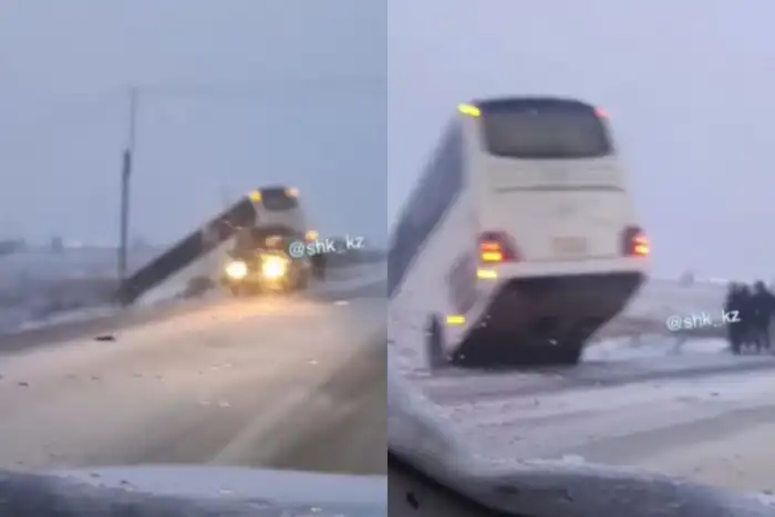 Автобус с пассажирами слетел с дороги в Карагандинской области. В салоне находились около 50 пассажиров. Водитель маршрутного автобуса в условиях метели и гололёда не справился с управлением и слетел в кювет. По информации пресс-службы департамента полиции, жертв и пострадавших нет.