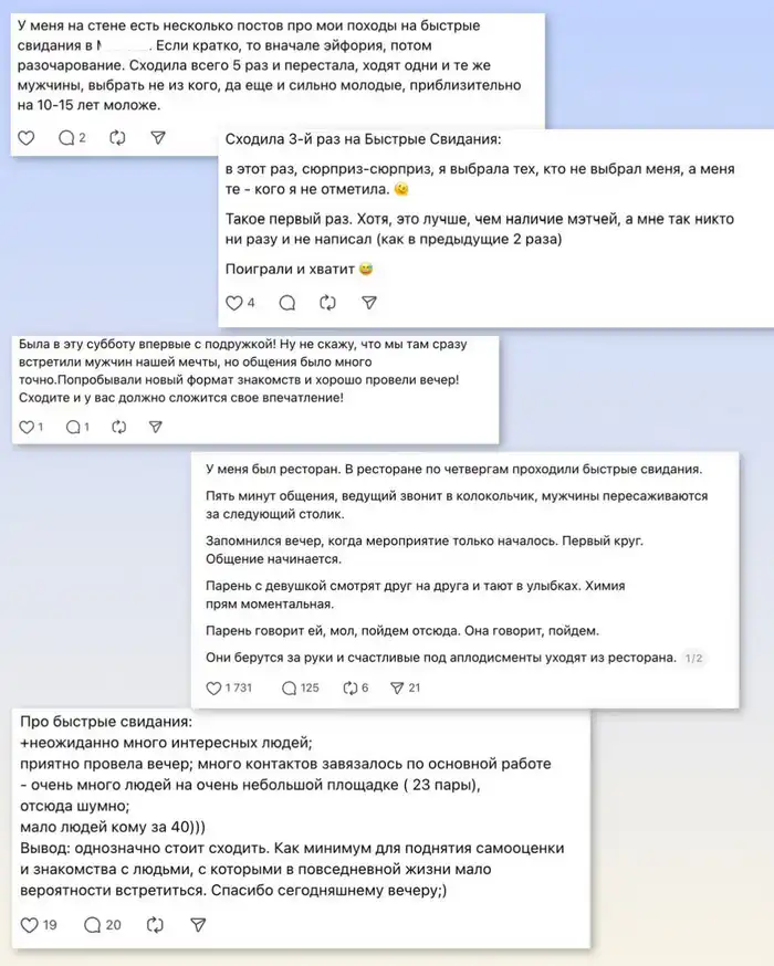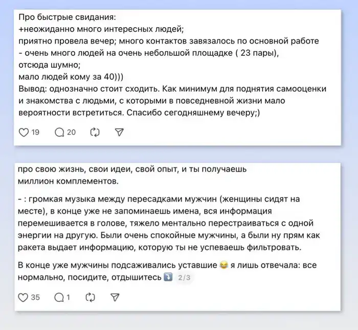 Мы пообщались с участниками, чтобы узнать, каково это — пройти через десять свиданий за несколько часов. Впечатления оказались разными: для одних это было увлекательно, для других — утомительно.