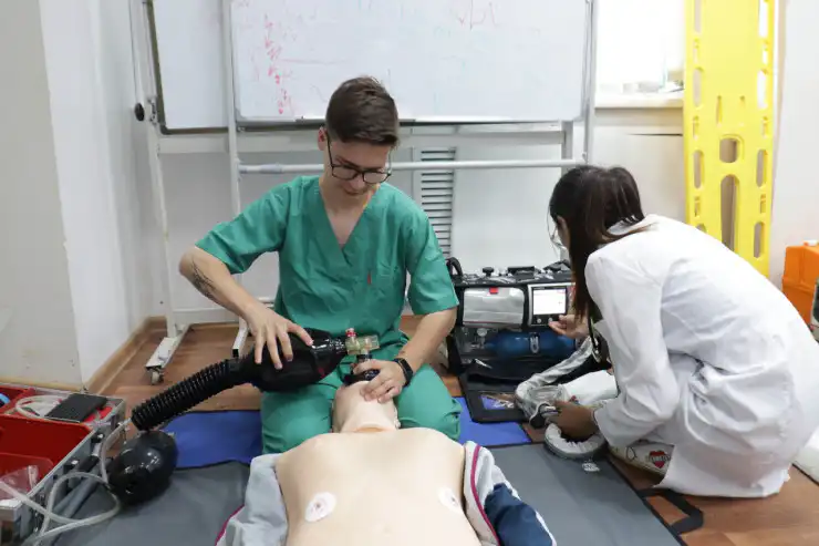 В центре имеется база учебных манекенов, включая уникальный симулятор, приобретённый за 46 миллионов тенге, который моделирует различные состояния пациента и оснащён системой обратной связи.