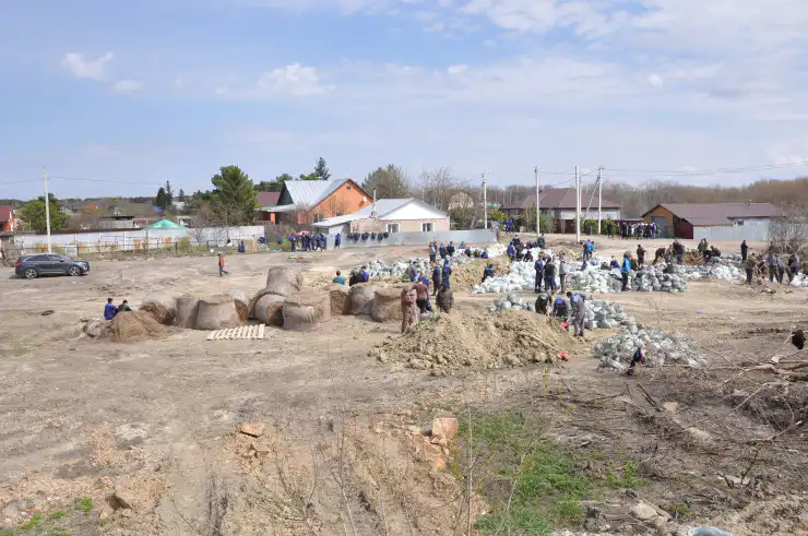 Согласно местным жителям, прошлой ночью в селе укрепляли дамбу, чтобы вода не подошла к домам.