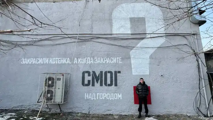 "Закрасили котенка, а когда закрасите смог над городом?" - говорится на серой стене.