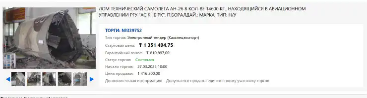 На торгах был продан технический лом самолета АН-26.