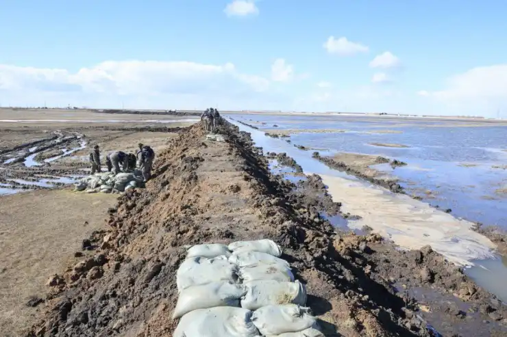 После серьезных паводков 2024 года власти Акмолинской области активизировали подготовку к половодью. По информации акимата, объем работ увеличился втрое: в 175 населенных пунктах были очищены русла рек, укреплены дамбы, проложены водоотводные каналы и установлены новые водопропускные сооружения.