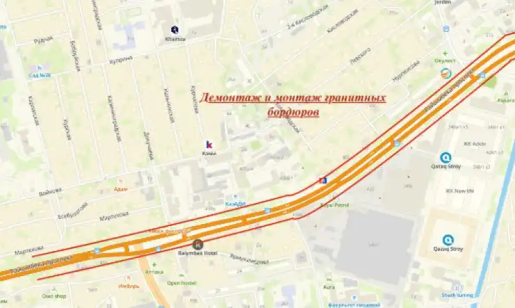"content": "В Алматы активно продолжается строительство скоростной автобусной системы BRT. Работы ведутся на различных участках, затрагивая как дороги, так и прилегающие территории, сообщает местная администрация.