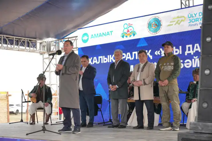 А вот аким Алматинской области Марат Султангазиев на этой неделе посетил международный марафон-байге "Ұлы дала жорығы", приуроченный к 80-летию Великой Победы. Ради этого мероприятия чиновник облачился в чапан и подготовил торжественную речь, которую записал на листочке.