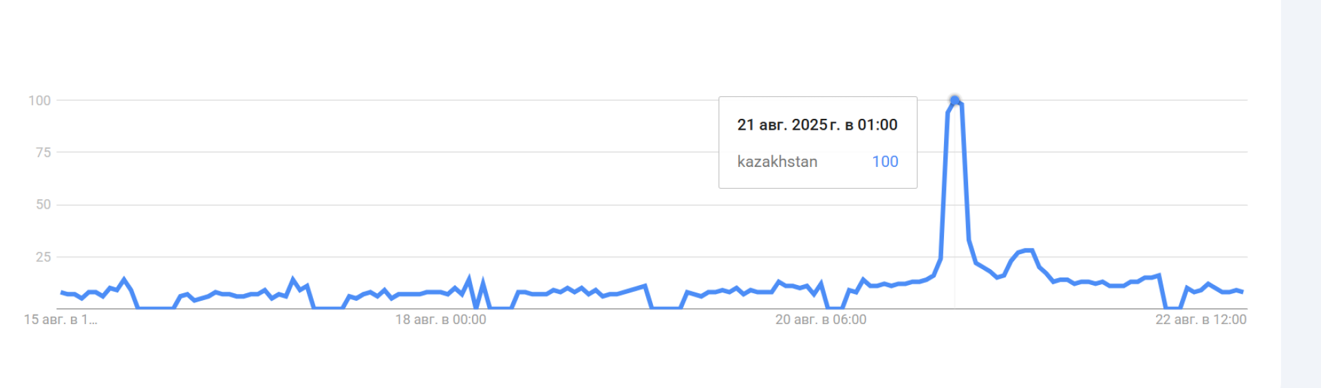 Не обошлось и без неожиданных запросов: резкий рост показал интерес к вопросу "Is Kazakhstan a rich country" (Является ли Казахстан богатой страной) — +3550%.