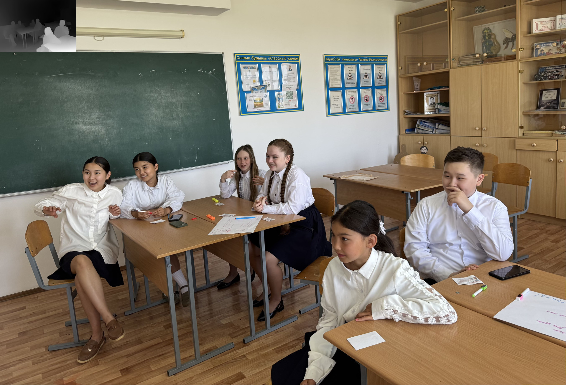 Ученики рассказывают, что на переменах они как один большой класс: общаются, играют, иногда "залипают в телефонах". На физкультуре играют в шашки, настольный теннис, мини-футбол. Дамир любит классический футбол, но в полной команде — 11 на 11 — играл только на районных соревнованиях. В школе же обычно играют три на три, и то когда несколько классов объединяются.