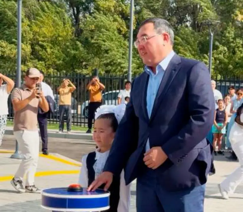 В тот же день Султангазиев открыл новую "Школу будущего" на 600 мест в селе Тонкерис, где он нажал на церемониальную красную кнопку в знак начала нового учебного года.