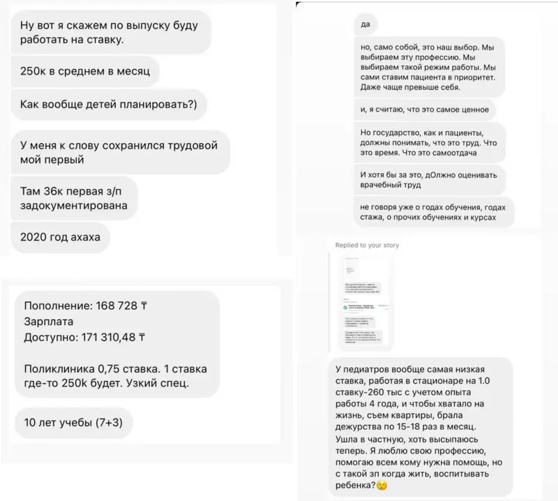 Ботагоз Каукенова объясняет, что написала этот пост, потому что это была последняя капля. Ей 32 года, она учится тринадцатый год. Ответственности и задач становится всё больше, но доход — всё меньше. В настоящее время она учится в медицинской школе университета на программе резидентуры по общей хирургии, что является последним этапом обучения перед началом самостоятельной практики.