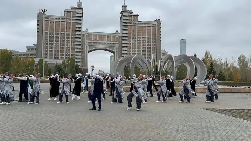 Глава Астаны Женис Касымбек также организовал ряд мероприятий в столице. 29 сентября в честь Дня пожилых более 50 пенсионеров исполнили казахский танец на площади напротив "Хан Шатыра".