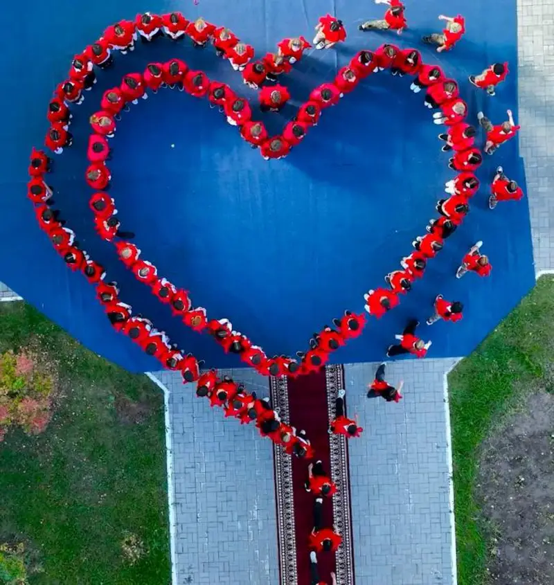 Также в этот день отмечали День учителя, где студенты колледжа сервиса и туризма составили огромное сердце из студентов в красном.