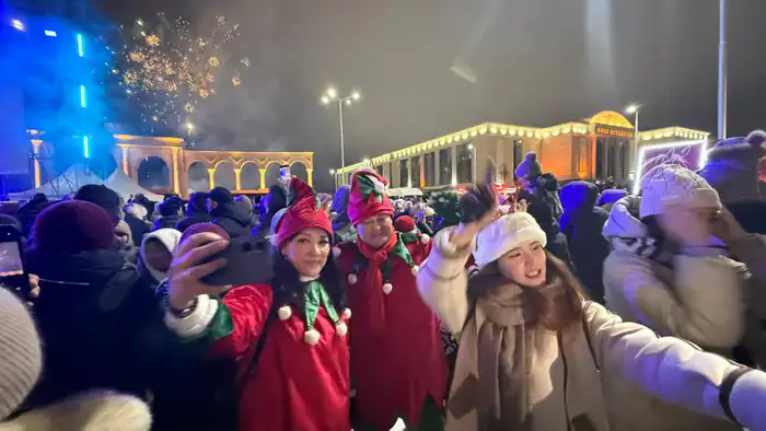 В Алматы новогодние празднования проходили на площади Астана, где жители и гости города наслаждались атмосферой веселья и музыки. Главный новогодний концерт собрал более 50 тысяч человек, несмотря на дождливую погоду.
