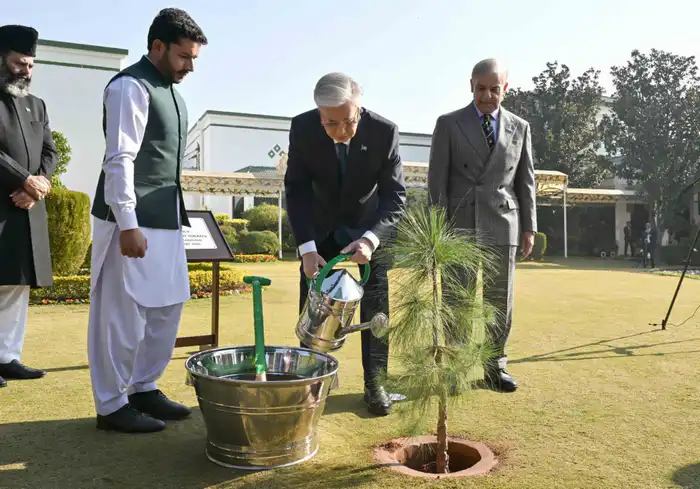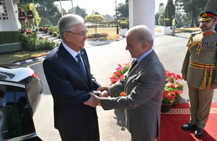 На встрече присутствовал премьер-министр Пакистана Шахбаз Шариф, который тепло встретил казахстанского лидера.