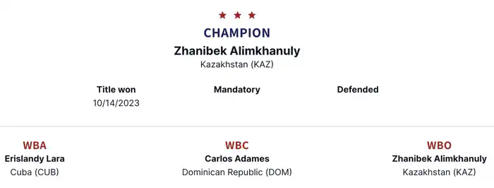Международная боксерская федерация IBF еще не обновила свои рейтинги с декабря 2025 года, однако по текущим данным, Алимханулы также остается чемпионом мира.