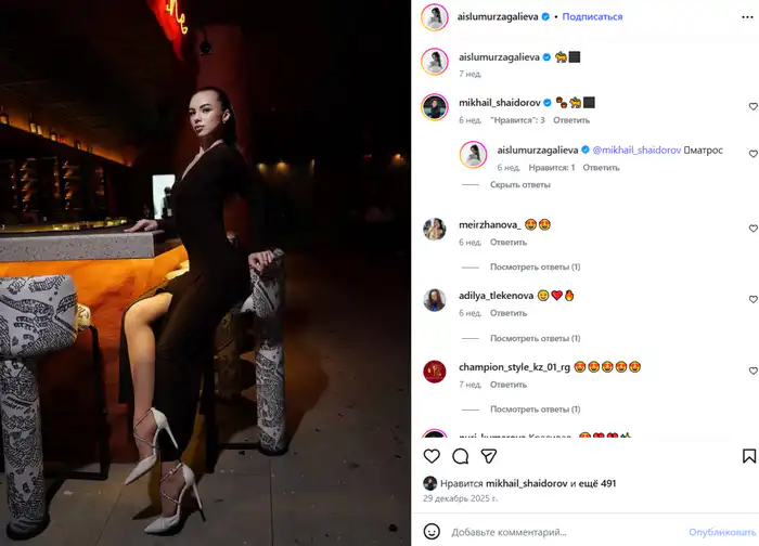 Интересно, что Михаил также подписан на профиль Айслу и активно комментирует её посты, используя "влюбленные" эмодзи и смайлики.