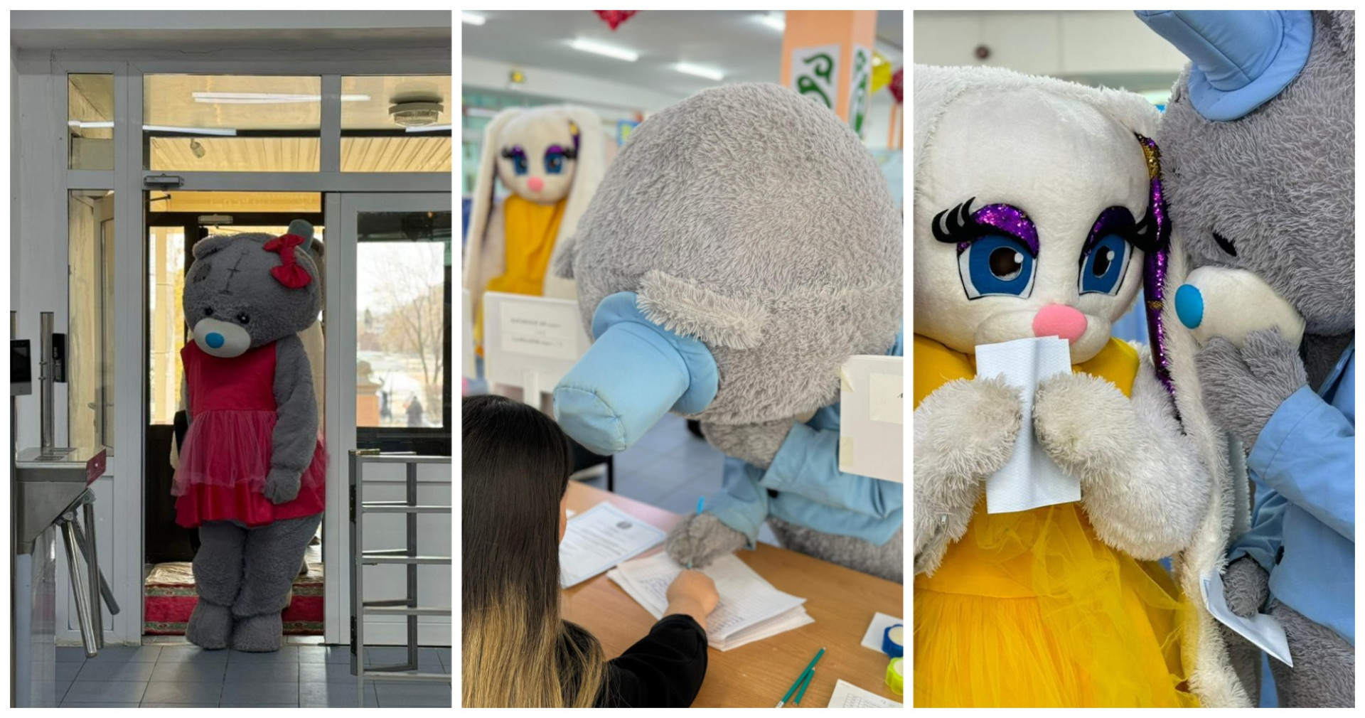 В Восточном Казахстане за атмосферу отвечали медведь, заяц и другие сказочные персонажи. В Балхаше голосовали ростовые куклы.