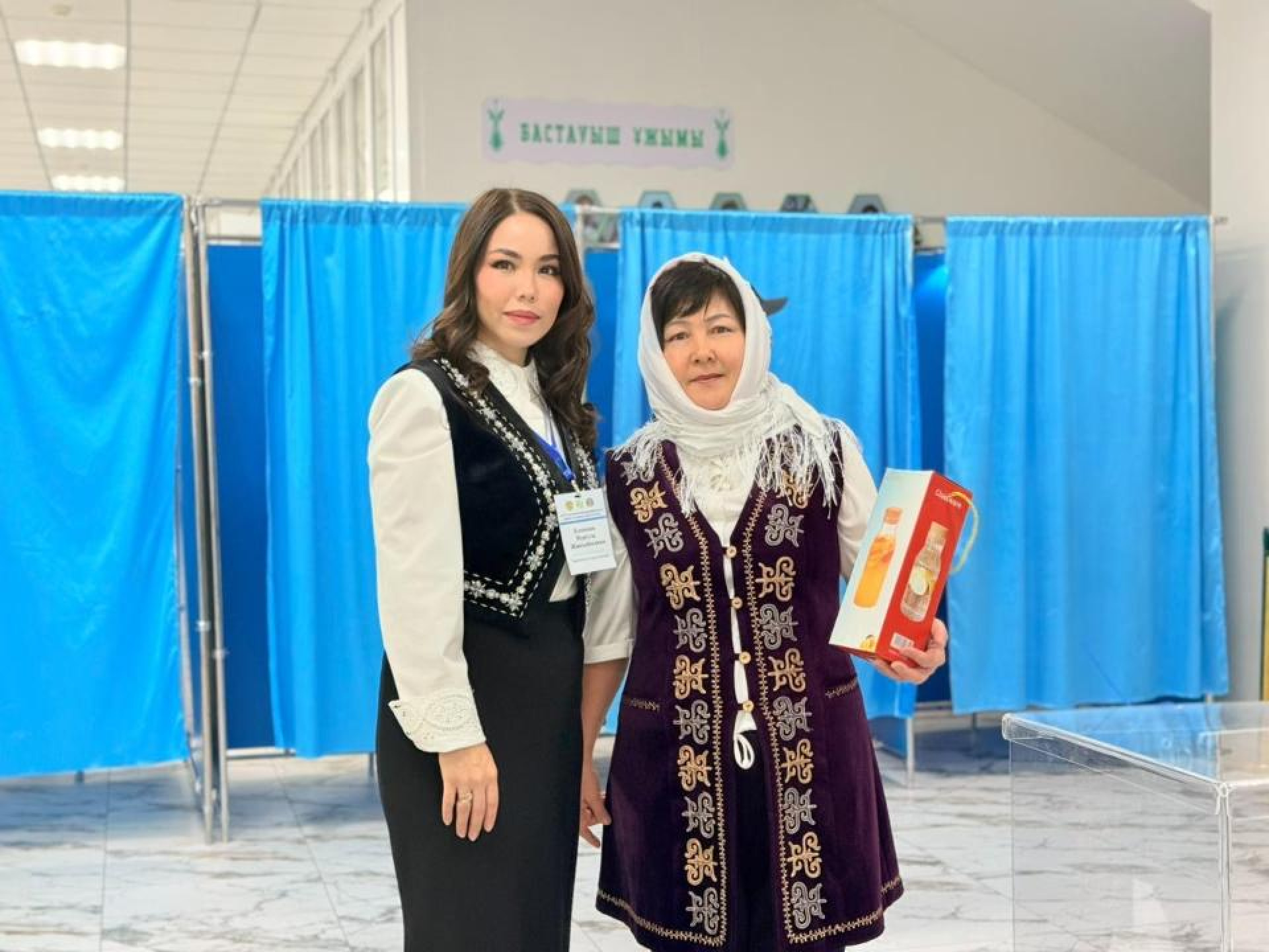 Первым голосующим на участках в Астане были вручены небольшие подарки, всего подготовили около 4 500 подарков.
