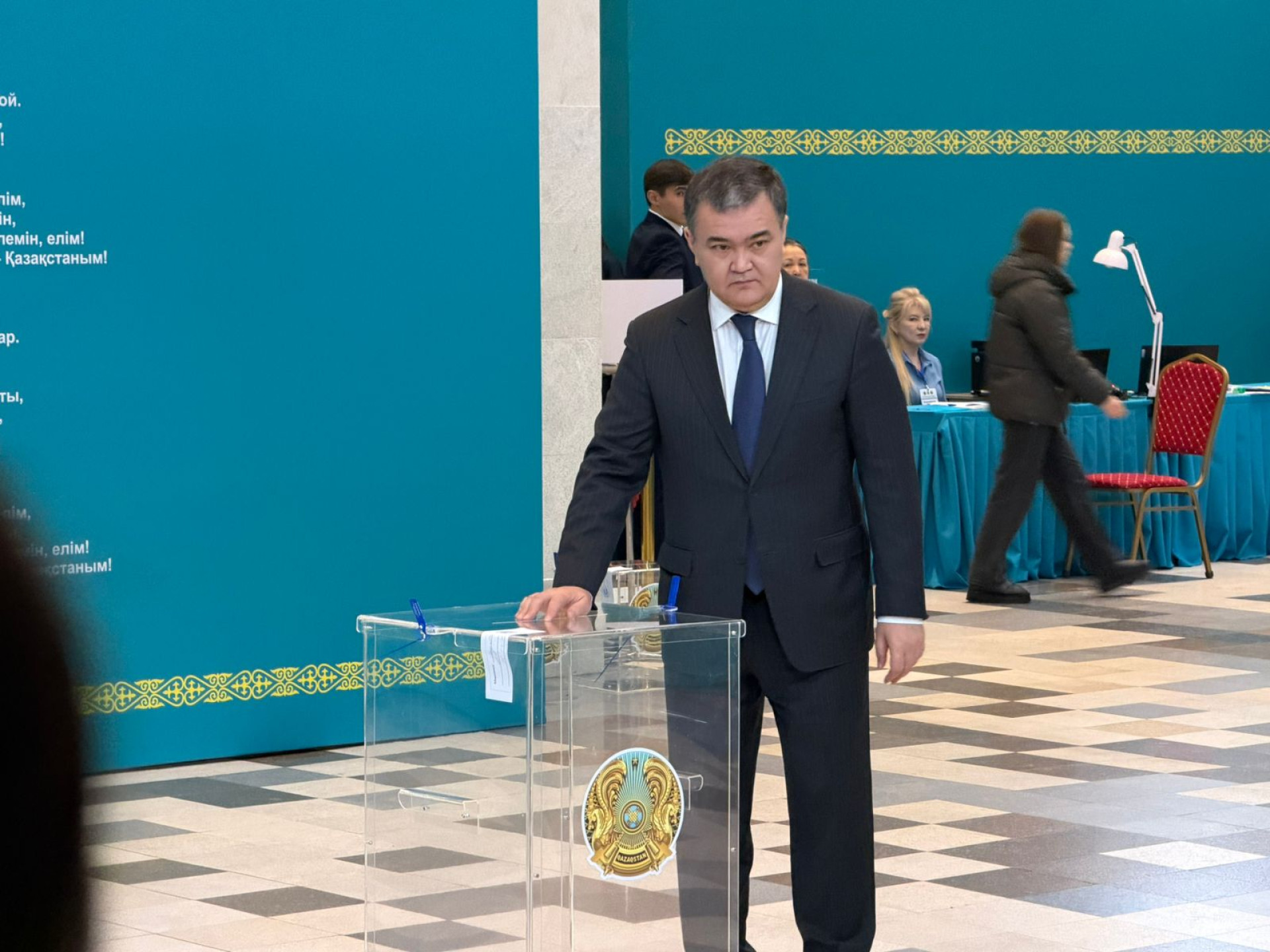 Среди первых избирателей были госслужащие. Аким столицы Женис Касымбек проголосовал в 07:16 во Дворце школьников.