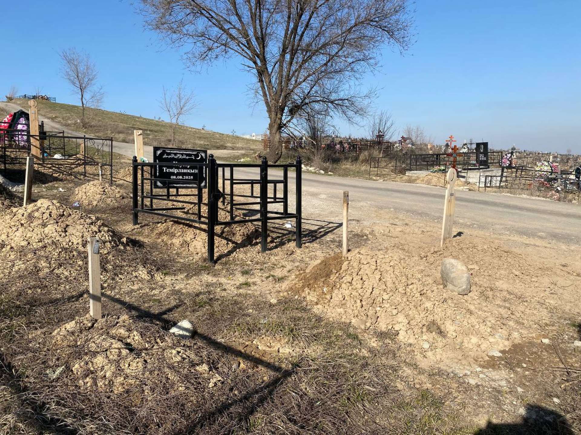 "Сперва необходимо обратиться в морг, так как тело в первую очередь поступает туда. Затем — в ТОО "СКРУ", так как они занимаются захоронением. Когда у вас на руках будут документы с данными человека, сотрудники компании проверяют его по базе, выясняют номер могилы и осуществляют её поиск", — говорит Евгения.