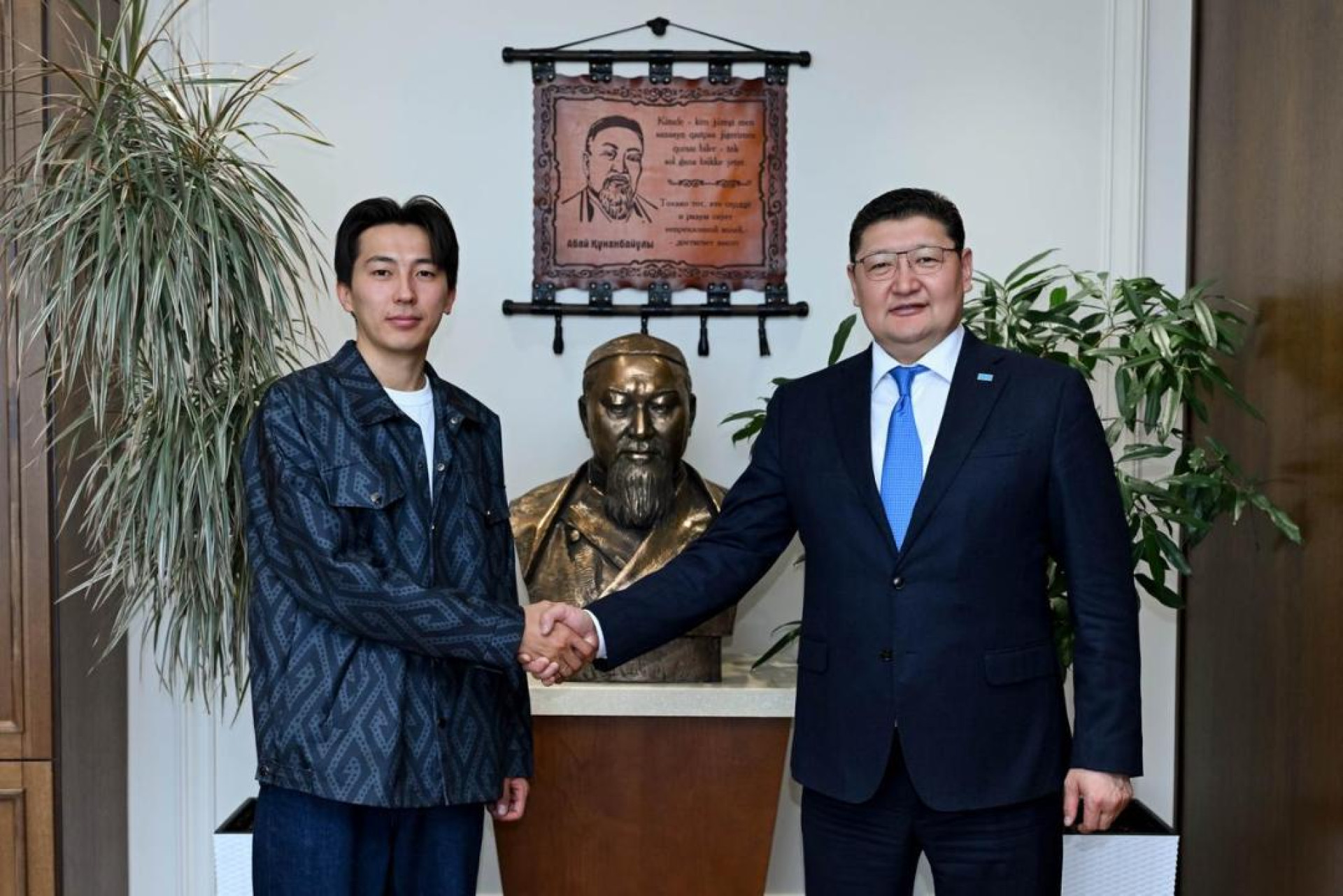 Аким области Абай Берик Уали также провел встречу с известным казахстанским путешественником и видеоблогером Дастаном Мухамедрахымом, который стал участником кампании по продвижению нового фильма Marvel "Человек-паук".