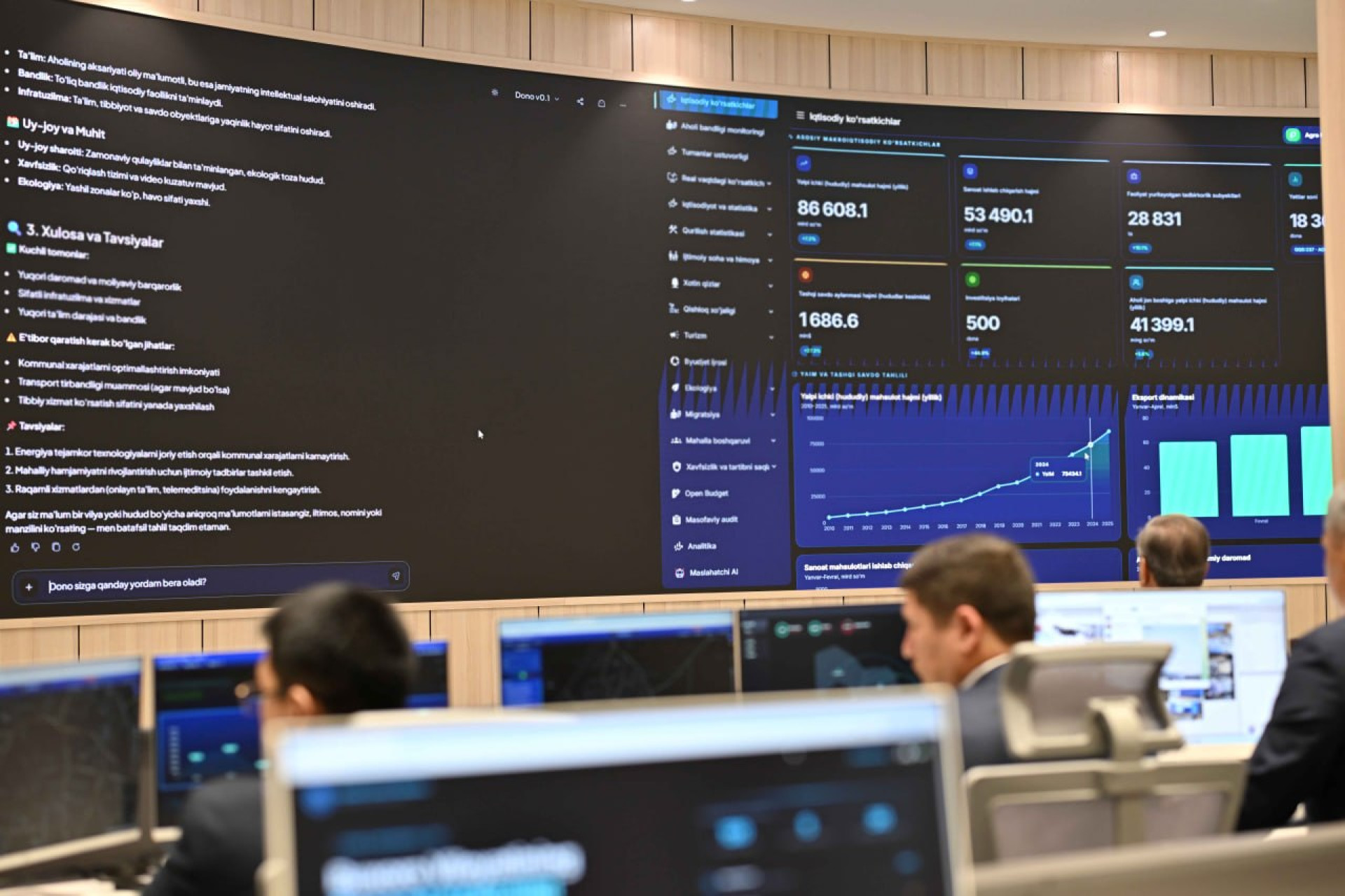 Президенты Касым-Жомарт Токаев и Шавкат Мирзиёев ознакомились с работой нового Ситуационного центра Бухарской области, который ведет круглосуточное наблюдение за обстановкой в регионе. Центр отслеживает: