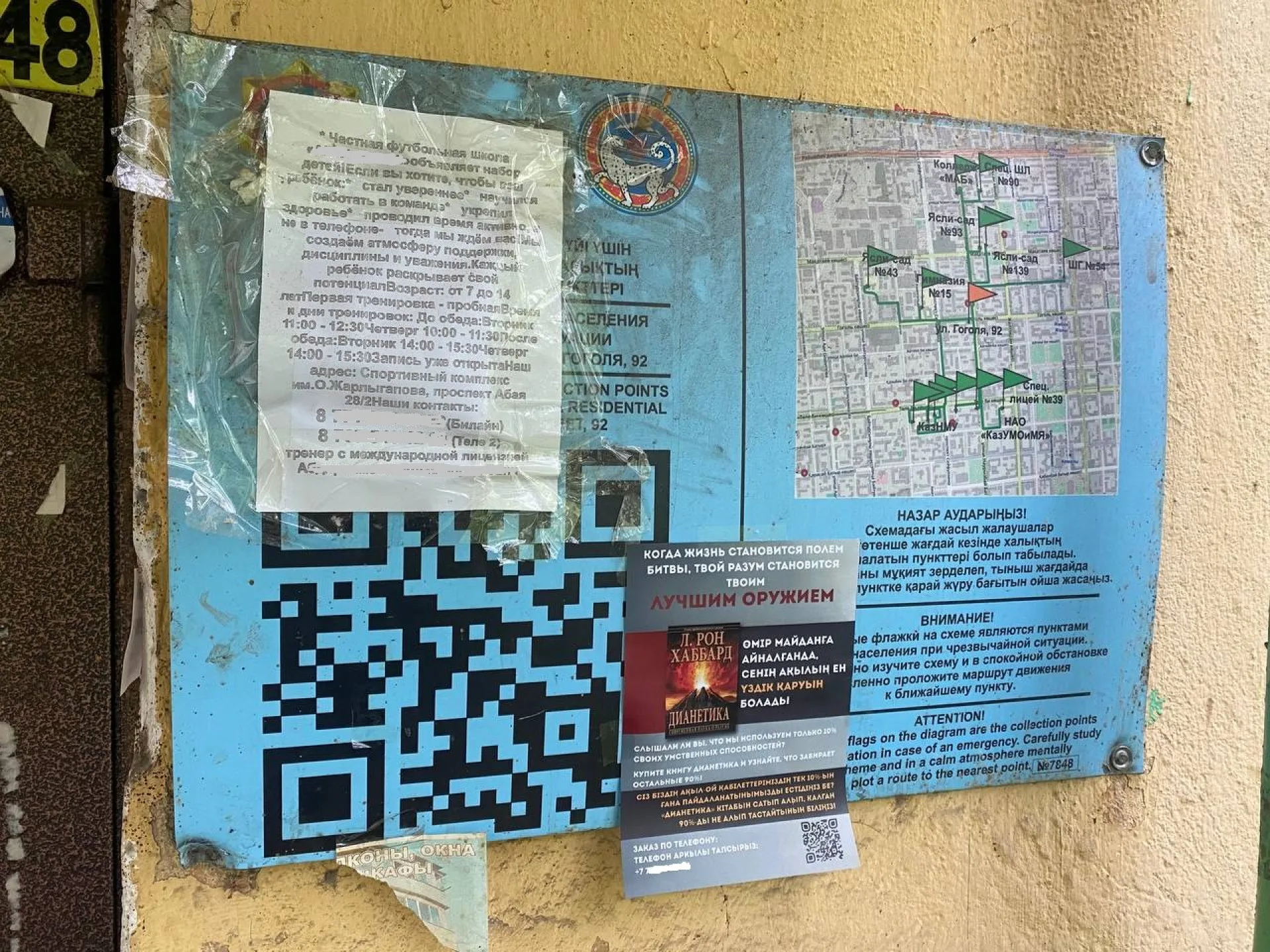 Они установлены почти у каждого подъезда в городе. Их, к слову, производили также за государственный счёт. В 2023 году ДЧС города потратил на это более 201 миллиона тенге. Всего было куплено 23 500 таких табличек. На них указаны маршруты к ближайшим пунктам эвакуации.