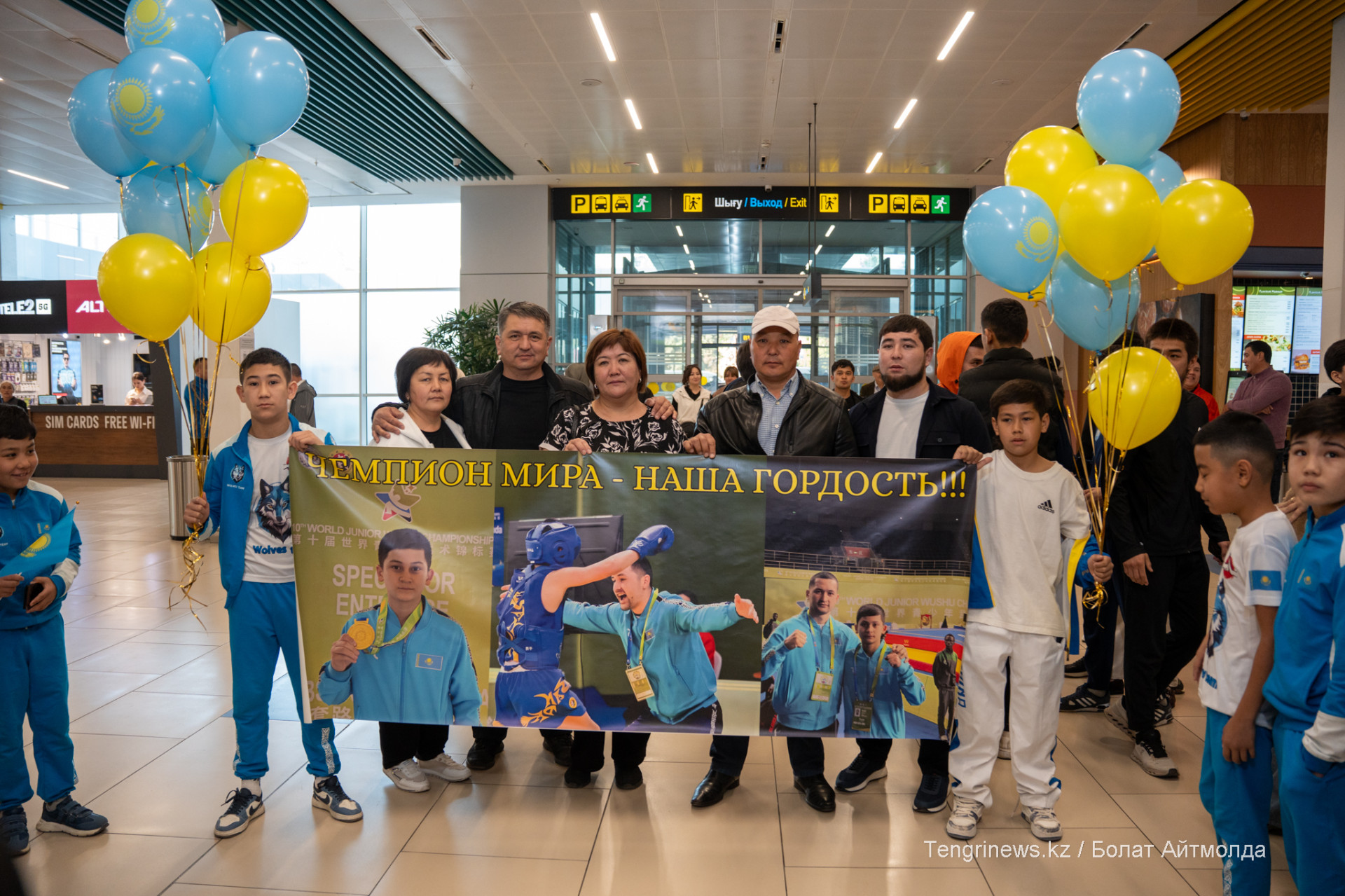 Молодёжная сборная Казахстана по ушу была торжественно встречена в аэропорту Алматы после их исторического успеха на чемпионате мира в Китае.